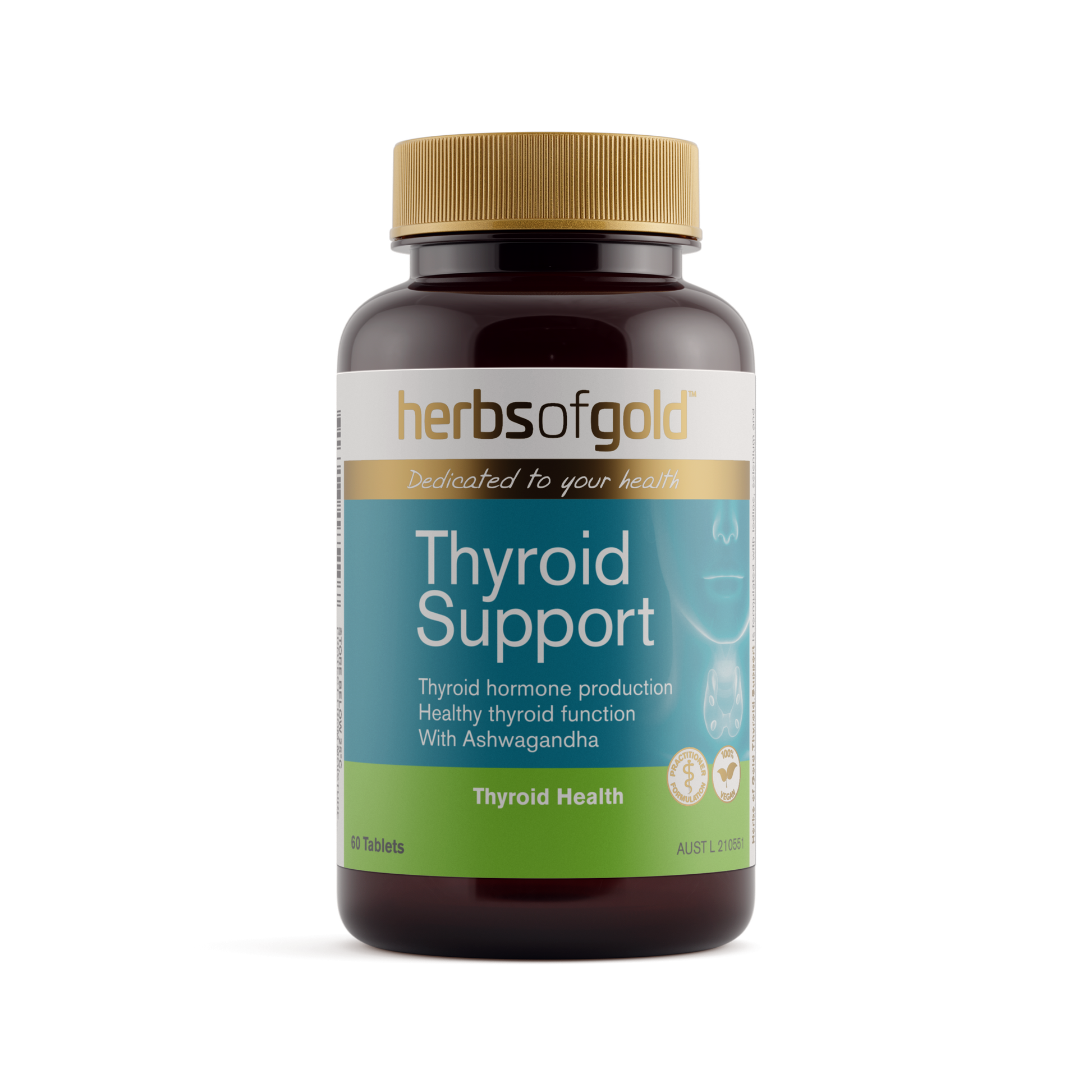 Herbs of Gold Thyroid Support is a comprehensive blend of vitamins and minerals, formulated to support thyroid gland health.