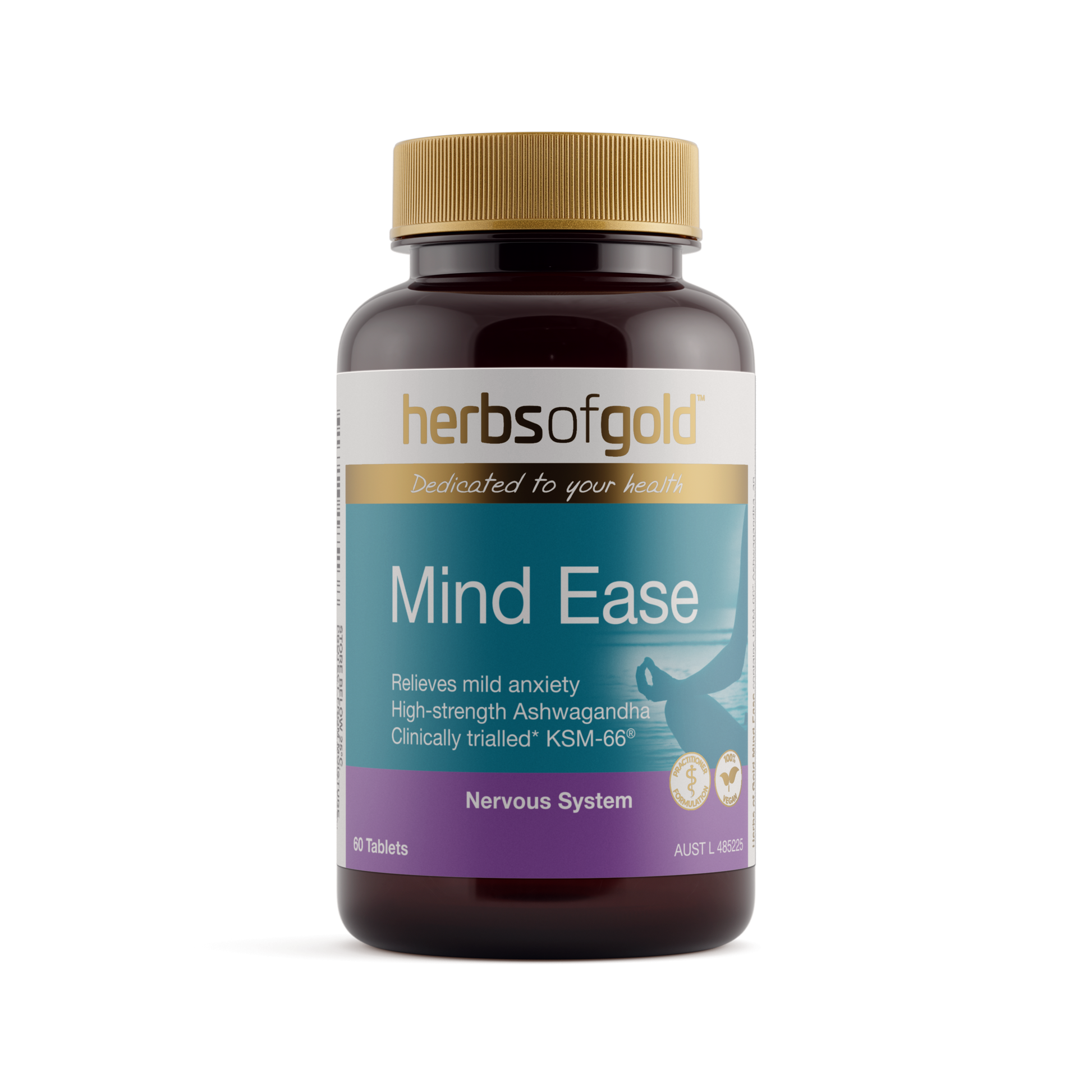 Herbs of Gold Mind Ease contains KSM-66®, a clinically trialled* Ashwagandha extract to relieve symptoms of mild anxiety.