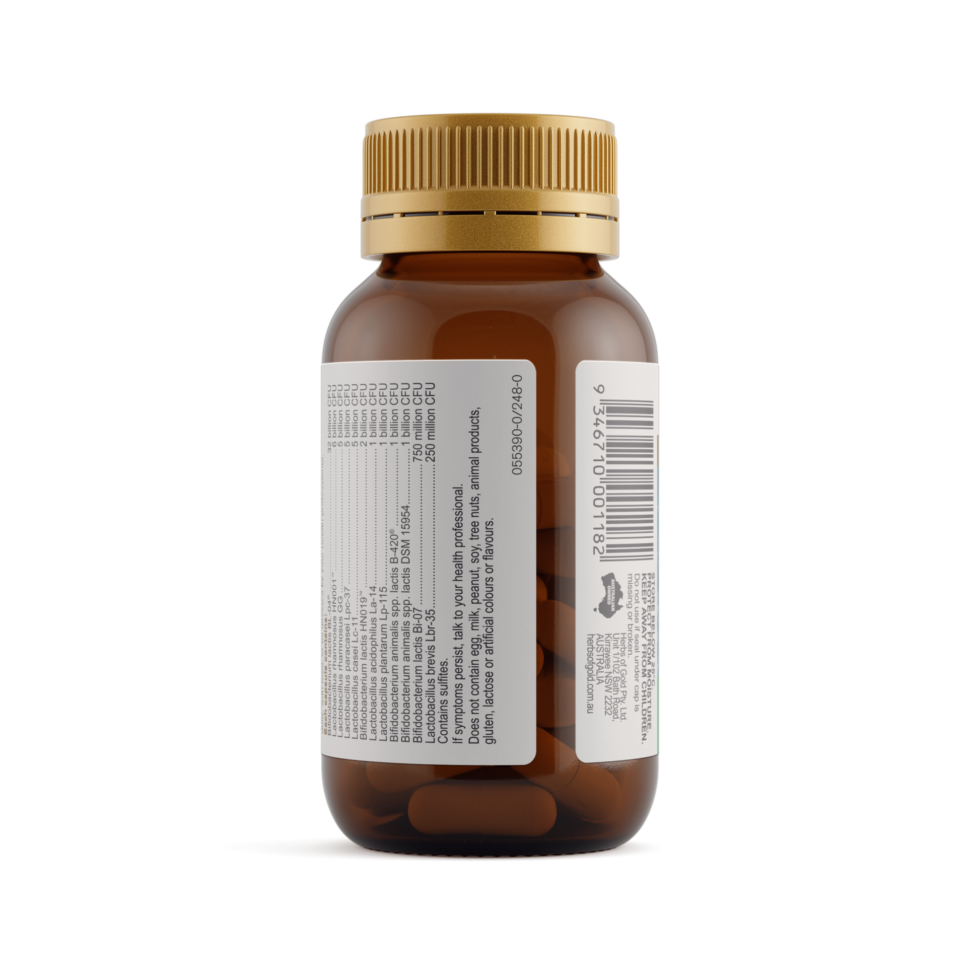 Herbs of Gold Probiotic 60 Billion is a high-strength combination of 12 different probiotics to maintain beneficial intestinal flora and healthy digestive system function.