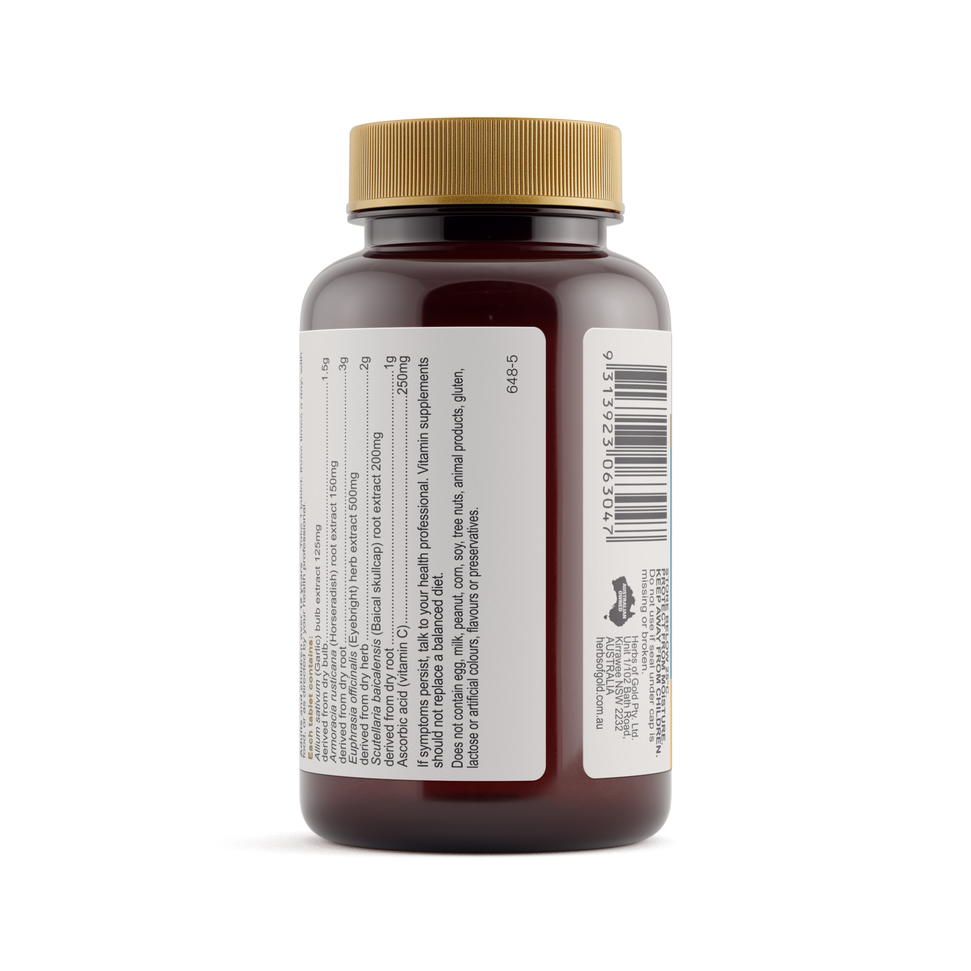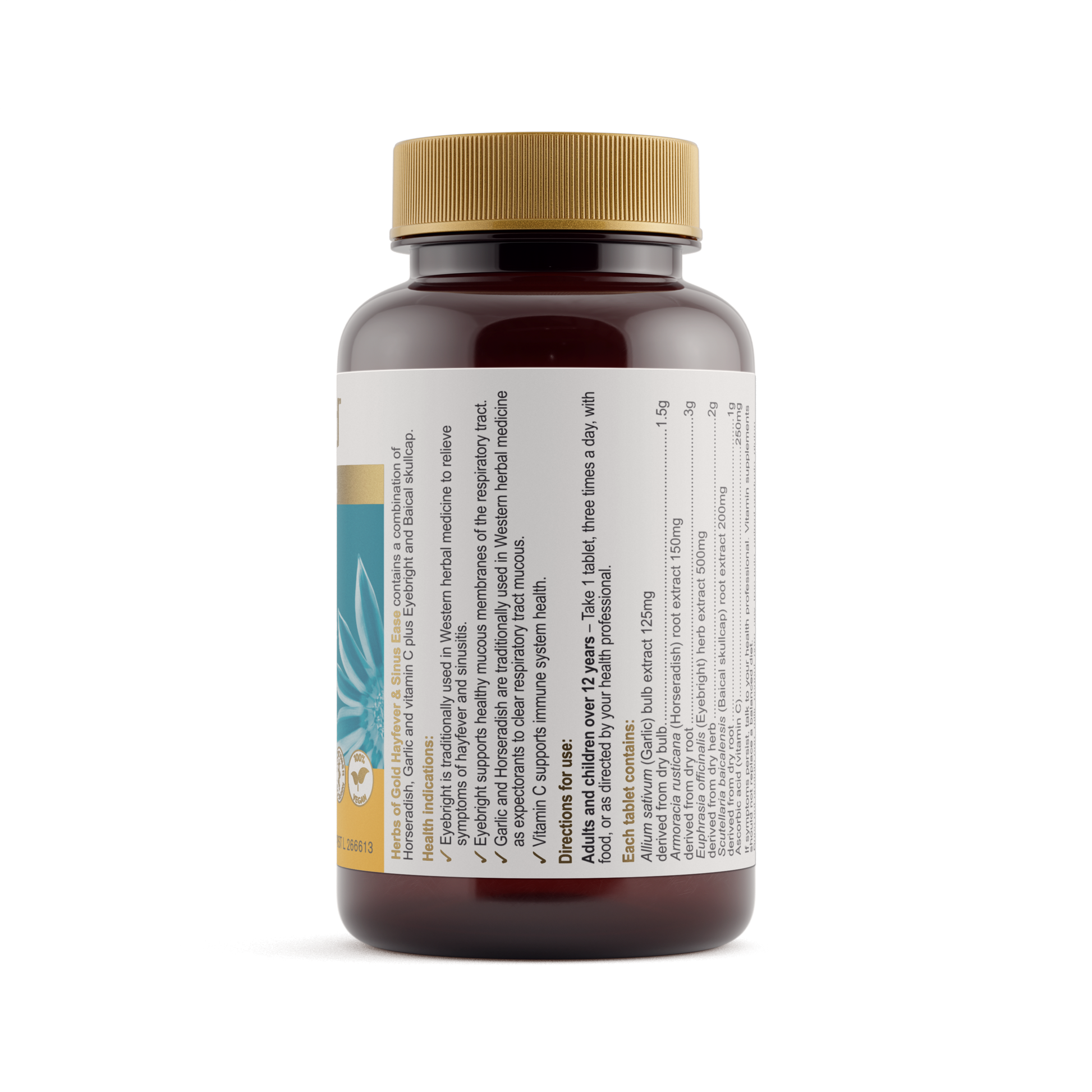Herbs of Gold Hayfever & Sinus Ease is a comprehensive formula that contains Eyebright, traditionally used in Western herbal medicine to relieve symptoms of hayfever and sinusitis.
