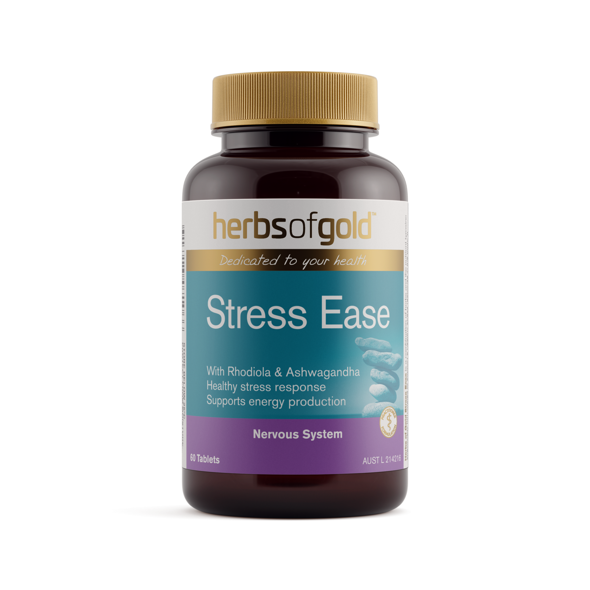 Herbs of Gold Stress Ease contains a blend of herbs to support a healthy stress response in the body.